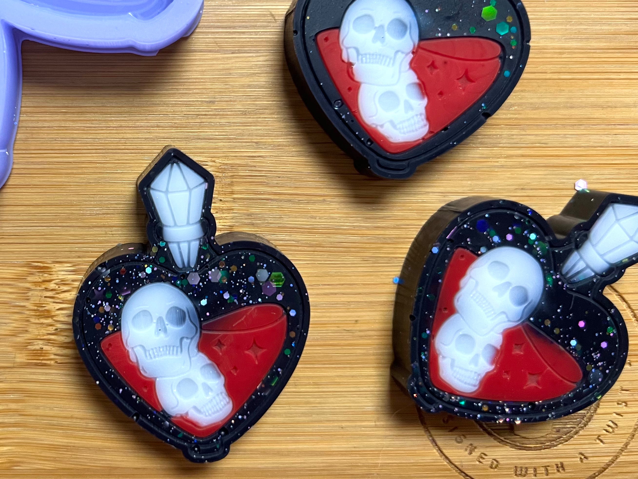 We use high quality platinum cure silicone which means that our moulds are flexible, durable, tear resistant and very easy to use. The standard colour of our silicone is custom purple/blue colour however you may receive other colours.
